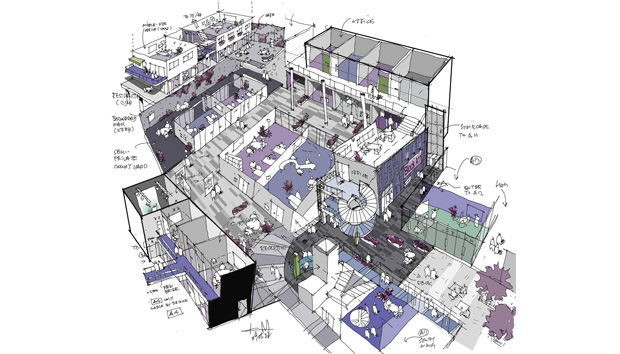 “創(chuàng)意園”最開(kāi)始的理念是,兼?zhèn)涔ぷ?居住/娛樂(lè)三大功能,24小時(shí)提供服務(wù)的活動(dòng)空間。它被認(rèn)為是適合于工作和休息時(shí)間區(qū)分并不明確的創(chuàng)意類(lèi)人群的活動(dòng)空間。當(dāng)初被冠以“合作(Collaboration)?平臺(tái)(Platform)”之名。在“8號(hào)橋”除了有“Loft”形式的工作室,還將展示空間,餐飲店,商店引入其中,另外還設(shè)有共用的員工食堂,會(huì)議室,雅致的庭院等。